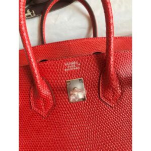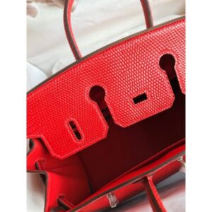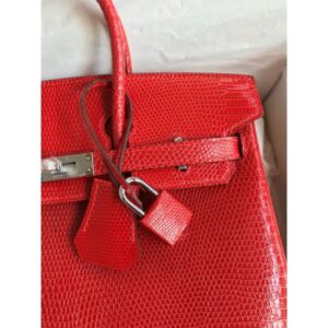 Hermes Birkin 25 Retourne Handmade Bag In Red Lizard Leather