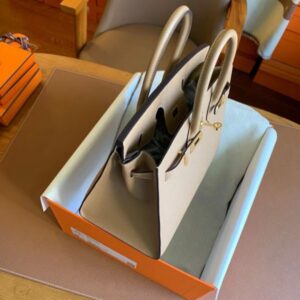 First adorned on the arm of the infamous Jane Birkin back in 1984, the Hermes Birkin Bag quickly soared to the top of the popularity charts. In addition to the classic Retourne Birkin, Hermès released the Sellier Birkin as part of the Birkin line in 2010. The Sellier style with external stitching and a sharp-edged structure is an exceptionally elegant handbag. This Sellier Birkin 25 is primarily crafted of Epsom leather, this printed leather takes its name from a town in south-east England that is famous for its horse races.