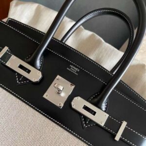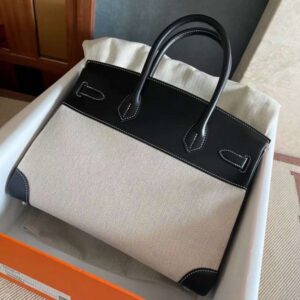 Hermes Birkin 30 Handmade Bag in Toile & Black Box Calfskin