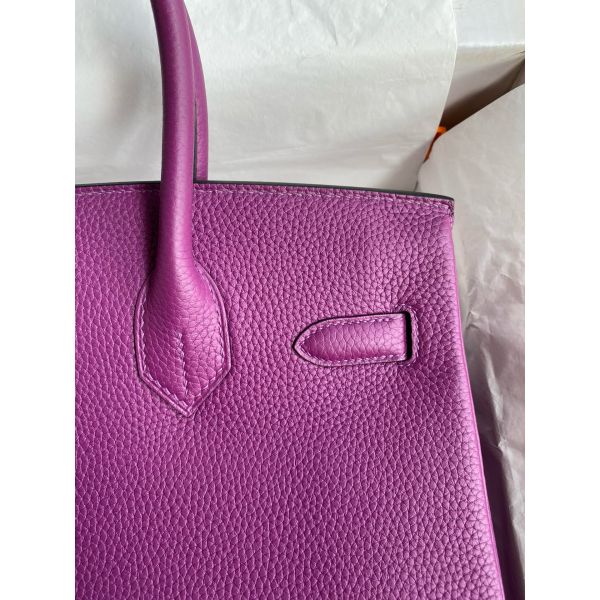 Hermes Birkin 30 Retourne Handmade Bag in Anemone Clemence Leather
