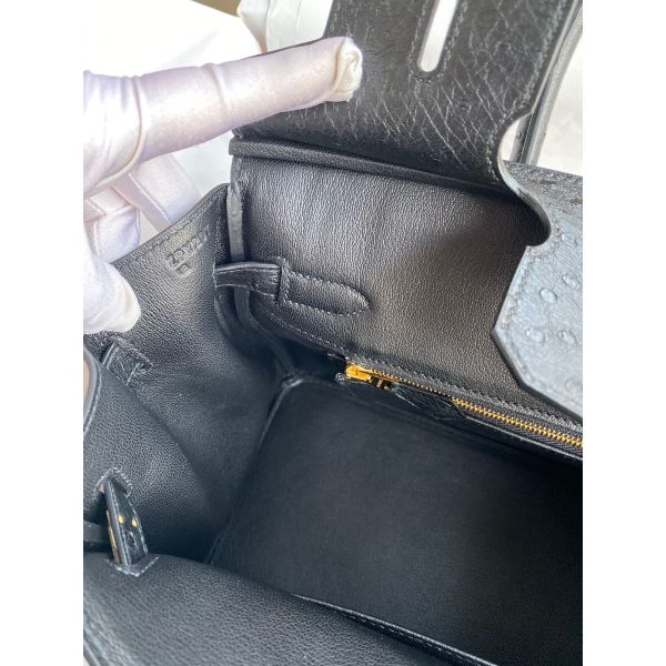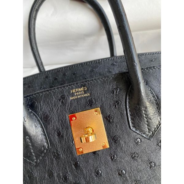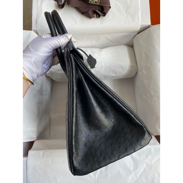 Hermes Birkin 30 Retourne Handmade Bag In Black Ostrich Leather