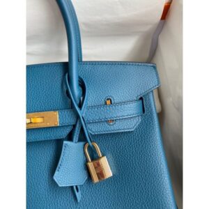 The original Hermès Birkin bag was inspired by and named after 60’s fashion icon Jane Birkin. It was designed to be a luxury bag that would meet the needs and stand up to daily use by a multitasking woman on the go. The Birkin 30 is the Goldilocks of the Birkin bag family, It is the ideal Hermès bag for everyday use. Created in Retourne style, thanks to the taurillon Clemence leather gives this bag the buttery soft feel that only comes from the highest quality leather.