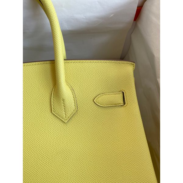 Hermes Birkin 30 Retourne Handmade Bag In Lime Epsom Calfskin