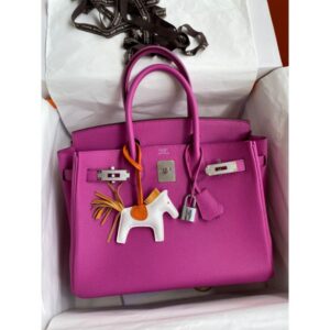 The original Hermès Birkin bag was inspired by and named after 60’s fashion icon Jane Birkin. It was designed to be a luxury bag that would meet the needs and stand up to daily use by a multitasking woman on the go. The Birkin 30 is the Goldilocks of the Birkin bag family, It is the ideal Hermès bag for everyday use. Created in Retourne style, thanks to the taurillon Clemence leather gives this bag the buttery soft feel that only comes from the highest quality leather.