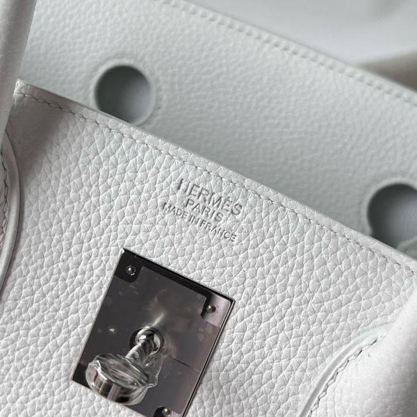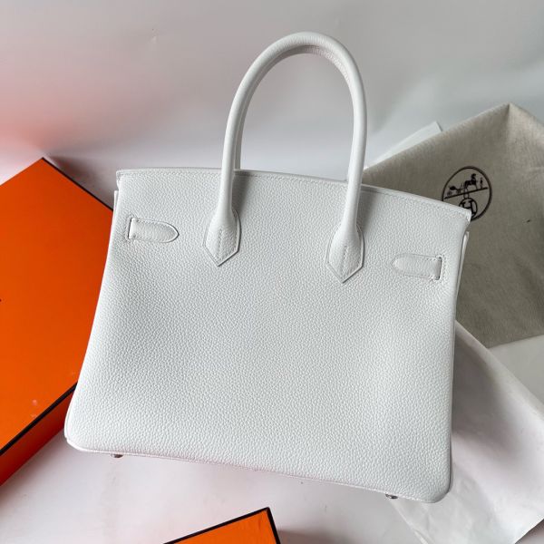 Hermes Birkin 30 Retourne Handmade Bag In White Clemence Leather