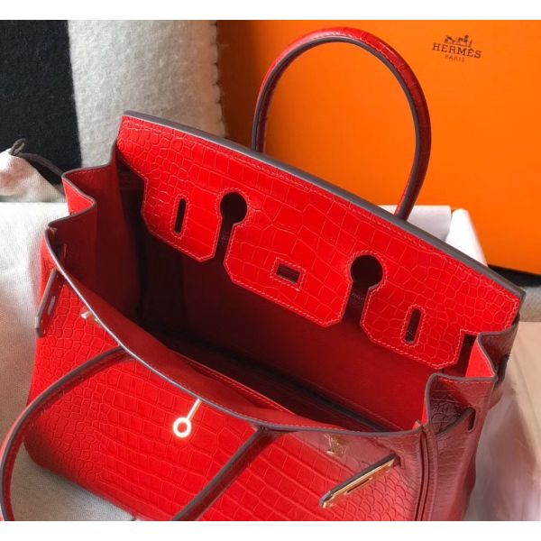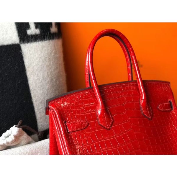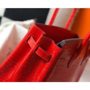 Hermes Birkin 30cm Bag In Red Embossed Crocodile Leather