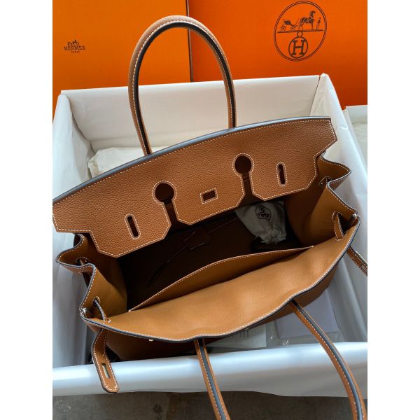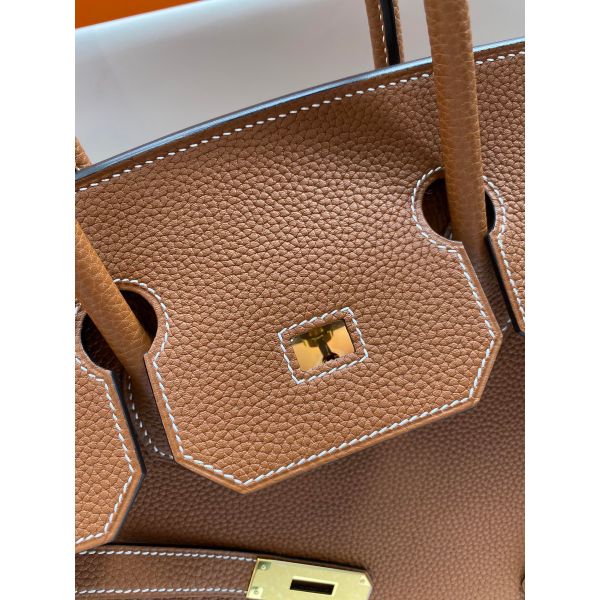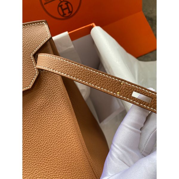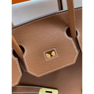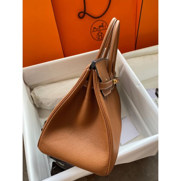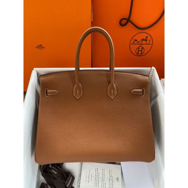 Hermes Birkin 35 Retourne Handmade Bag In Gold Clemence Leather