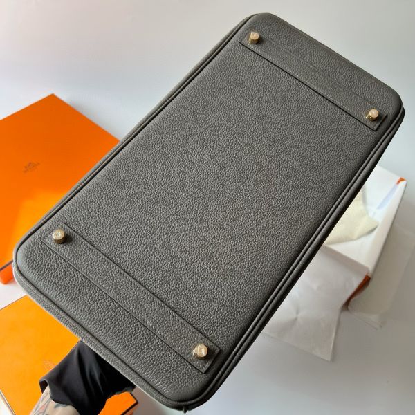 Hermes Birkin 40 Retourne Handmade Bag In Etain Clemence Leather