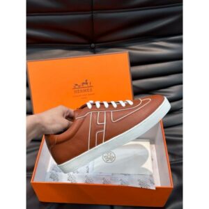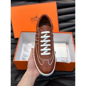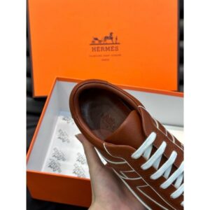 Hermes Boomerang Sneakers In Brown Epsom Calfskin