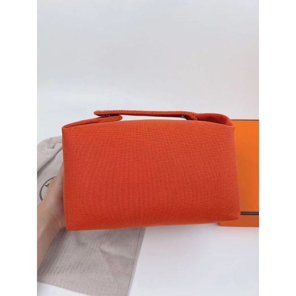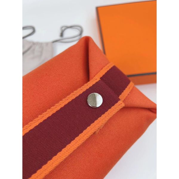 The beauty of this Hermès Bride-a-Brace large case lies in its striking and versatile design. Created from canvas, it is added with a bi-colored handle that can be buttoned inward and the logo detailing on the front offers it a touch of exclusivity. The lined interior of the bag is secured by a zipper closure at the top.