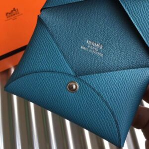Hermes Calvi Card Holder In Blue Jean Epsom Leather