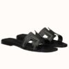 Hermes Oran Slide Sandals in White Swift Calfskin with Printed Lining