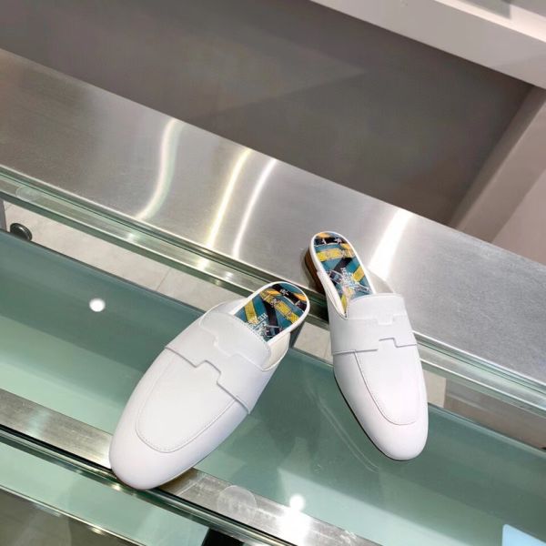 Hermes Catena Mules In White Calfskin