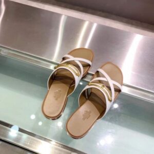 Hermes Oran Slide Sandals in White Swift Calfskin with Printed Lining