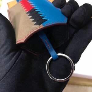 This Clochette Cles grand tressage charm from Hermes displays a braided patterns, the multicolours Epsom leather has a different take on the pattern inside. This iconic material is beautifully crafted into a case that houses a key ring inside.