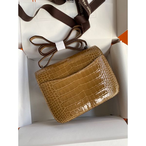 Hermes Constance 18 Handmade Bag In Beige Shiny Alligator Leather