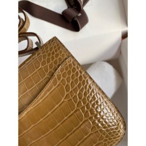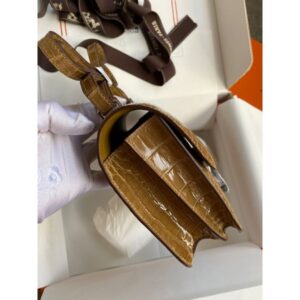 Introduced in 1969, the Hermès Constance quickly became one of the most highly sought-after of the brand’s luxury bags, behind only the Kelly bag and the Birkin. The Hermès Constance 18 is a stylish shoulder bag designed with versatility in mind. The Constance 18, also referred to as the Hermès Constance Mini. The squarish shape and large, prominent “H” closure across the front give this bag a youthful appeal, even when rendered in a sophisticated Shiny Alligator skin. A skin that comes from the Mississippi Alligator, this leather is created by polishing the spots with agate for a Shiny finish.