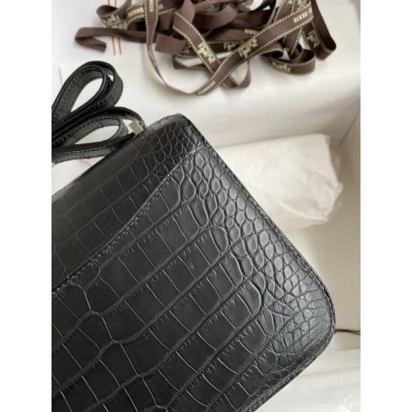 Hermes Constance 18 Handmade Bag in Black Matte Alligator Leather