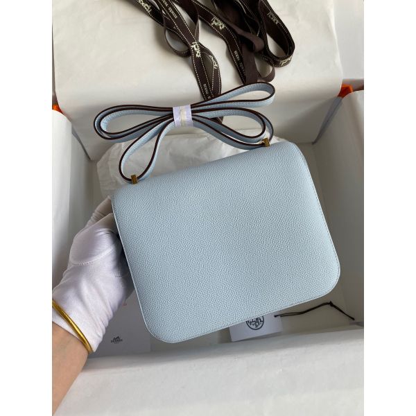 Hermes Constance 18 Handmade Bag In Blue Brume Epsom Calfskin
