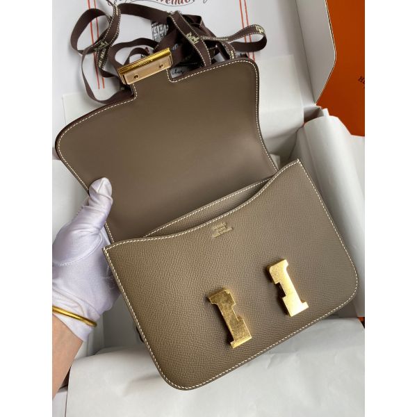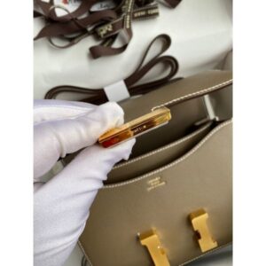 Introduced in 1969, the Hermès Constance quickly became one of the most highly sought-after of the brand’s luxury bags, behind only the Kelly bag and the Birkin. The Hermès Constance 18 is a stylish shoulder bag designed with versatility in mind. The Constance 18, also referred to as the Hermès Constance Mini. The squarish shape and large, prominent “H” closure across the front give this bag a youthful appeal, even when rendered in a durable Epsom calfskin, which is particularly popular because it tends to show color with greater vibrancy than most other leathers.