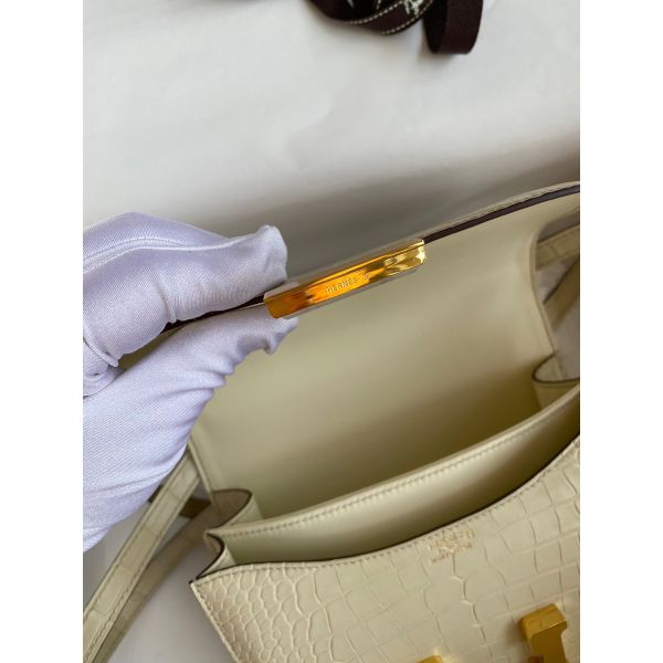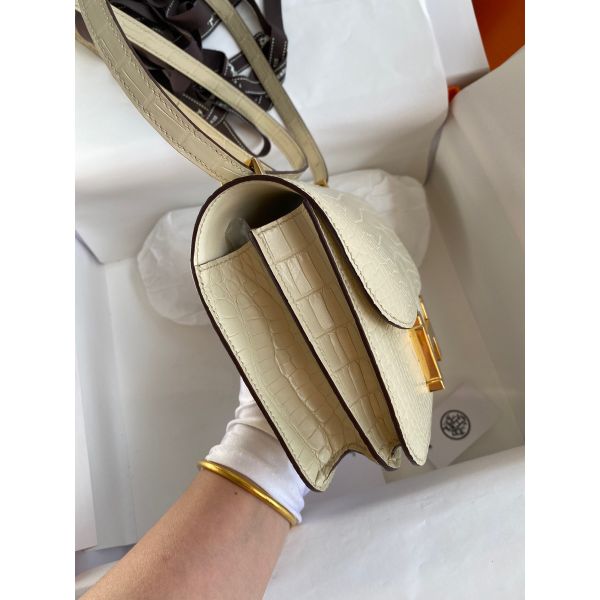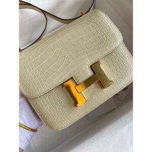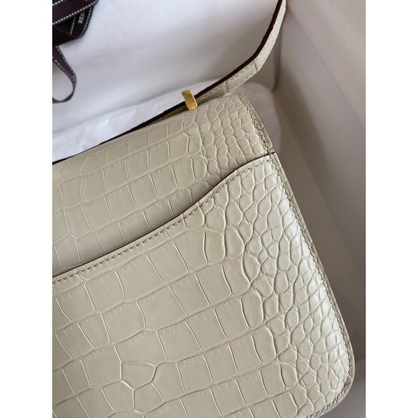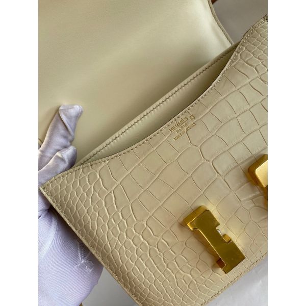 Hermes Constance 18 Handmade Bag In Vanille Matte Alligator Leather
