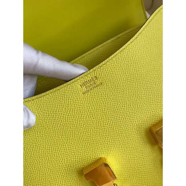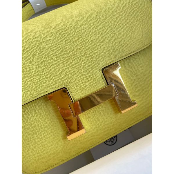 Hermes Constance 24 Handmade Bag In Lime Epsom Calfskin