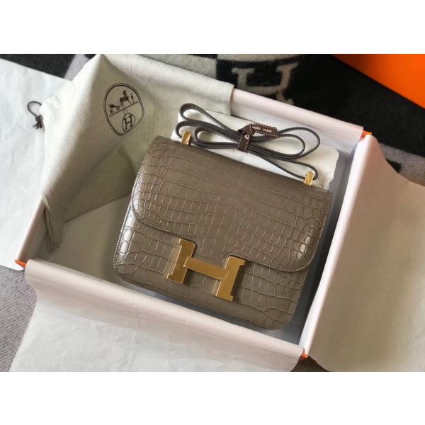 Hermes Constance 24cm Bag In Taupe Embossed Crocodile