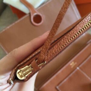 Presenting the Hermes Dogon Wallet. The Dogon Wallet features a leather strap and “Clou de Selle” tab closure. The tab is a circular shape with‘Hermes Paris’engraved on it. This wallet comes from Combined style, and the design looks quite easy and our eyes are pointing to the silver plated closure in the center. It is the most convenient way to organize your essentials like your bills, credit cards, coins and more.