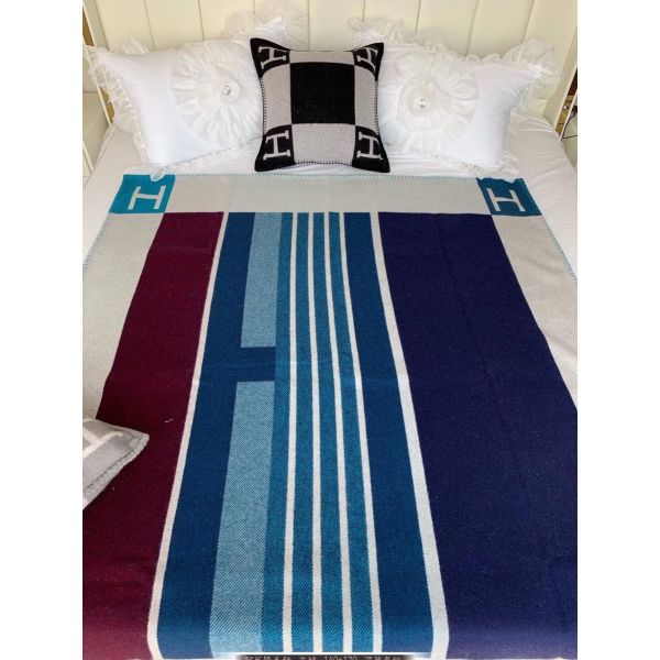 Revealed by a double-sided Jacquard weave, the visual motifs of this merino wool and cashmere blanket draw inspiration from specialized jockey jerseys and horse rugs created at the Hermes workshop on the Faubourg Saint-Honoré that operated from the beginning of the 20th century up to the 1960s. On the principle of heraldry, the study of coats of arms, each stable had its own motif. These motifs were emblazoned on the jerseys worn by jockeys and on the horse rugs, making it possible to identify the stables during races.