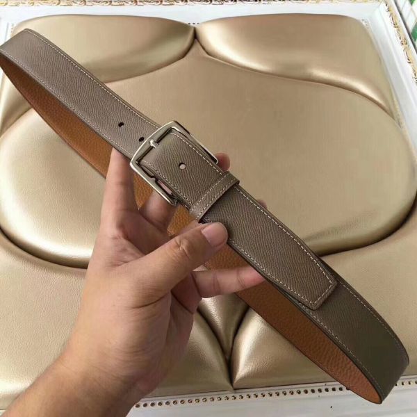 Hermes Constance Reversible Belt 38MM in Grey Clemence Leather