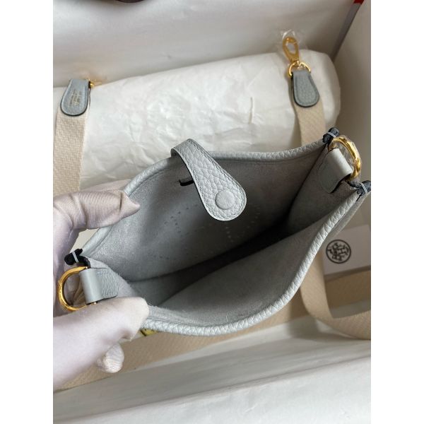 Hermes Evelyne Mini Handmade Bag in Blue Brume Clemence Leather