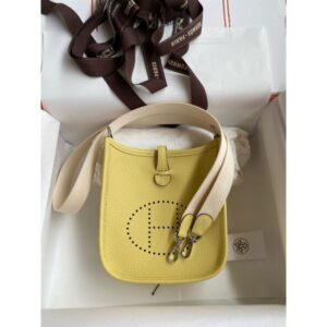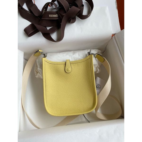 Hermes Evelyne Mini Handmade Bag in Jaune Poussin Clemence Leather