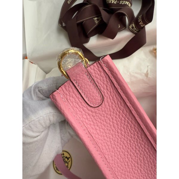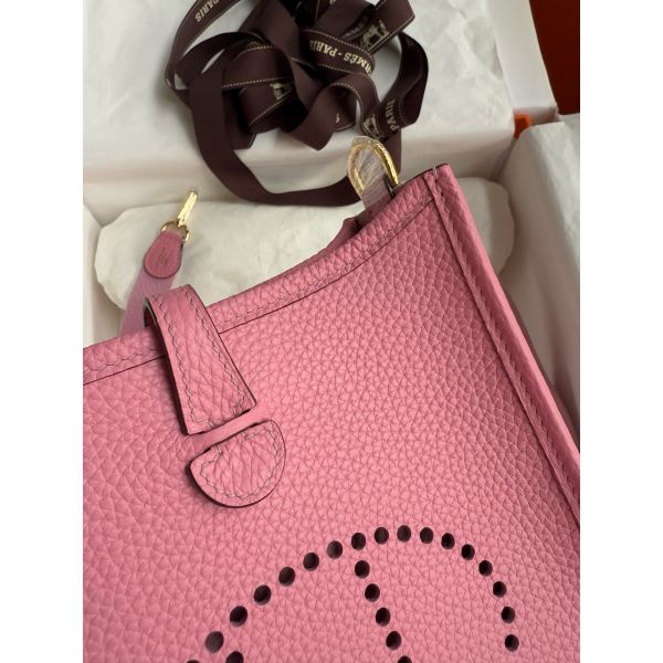 Hermes Evelyne Mini Handmade Bag in Rose Sakura Clemence Leather