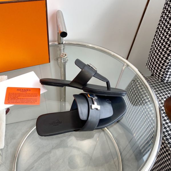 Hermes Oran Slide Sandals in White Swift Calfskin with Printed Lining