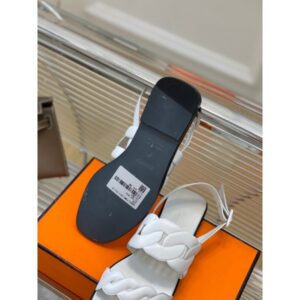Hermes Oran Slide Sandals in White Swift Calfskin with Printed Lining