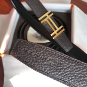 Hermes Mini Constance 24mm Belt in Taupe Epsom Leather and Tan Swift Leather