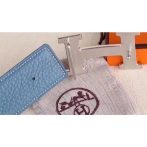 Hermes Mini Constance 24mm Belt in Orange Epsom Leather and Blue Swift Leather
