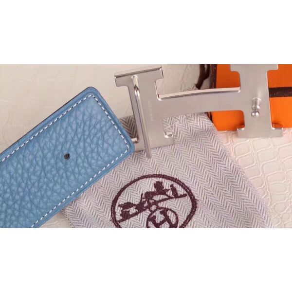 Hermes Mors H 24mm Reversible Belt in Blue and White Epsom Leather