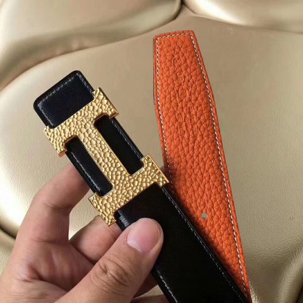 Hermes Gamma 13mm Belt in Orange Epsom Leather and White Swift Leather