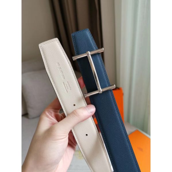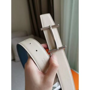 Hermes Gamma 13mm Belt in White Epsom Leather and Taupe Swift Leather