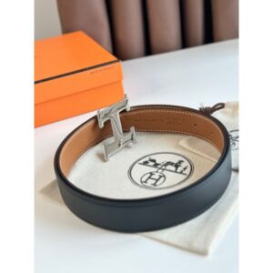 Hermes H Touareg Reversible Belt 32MM in White Epsom Leather