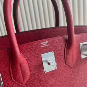 Hermes HAC Birkin 40 Handmade Bag in Red Clemence Leather