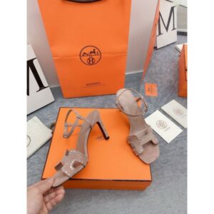 Step out in style for seasons to come with Hermes’s timeless Heden sandals. Made from suede leather with rhinestone details and palladium-plated Hapi buckle. They have “H” cut-out vamp and 80mm stiletto heels, while the wrap-around ankle strap for a chic feminine look.