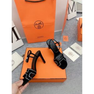 Step out in style for seasons to come with Hermes’s timeless Heden sandals. Made from suede leather with rhinestone details and palladium-plated Hapi buckle. They have “H” cut-out vamp and 80mm stiletto heels, while the wrap-around ankle strap for a chic feminine look.