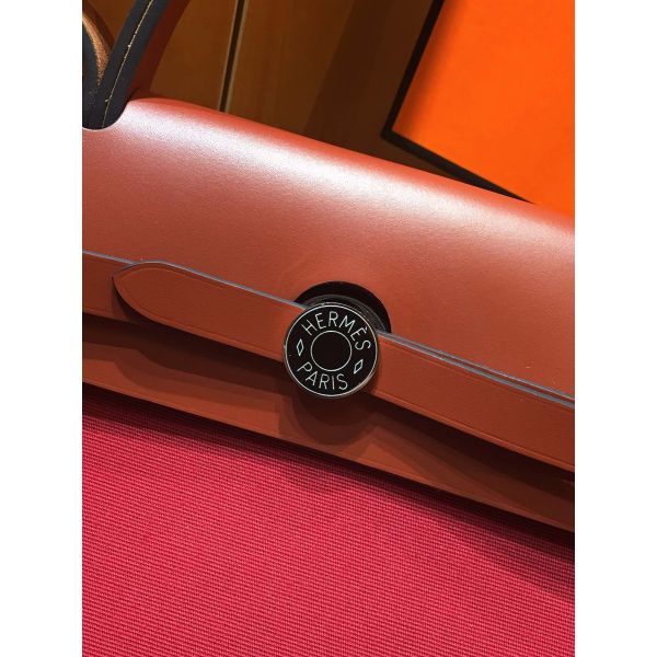 Hermes Herbag Zip 31cm Bag In Camel And Bordeaux