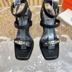 Hermes Ivresse sandals have a simple three-strap design and 65mm block heels . They’ve been made from calf leather and palladium-plated buckle and iconic Medor studs. A western style for a chic look.