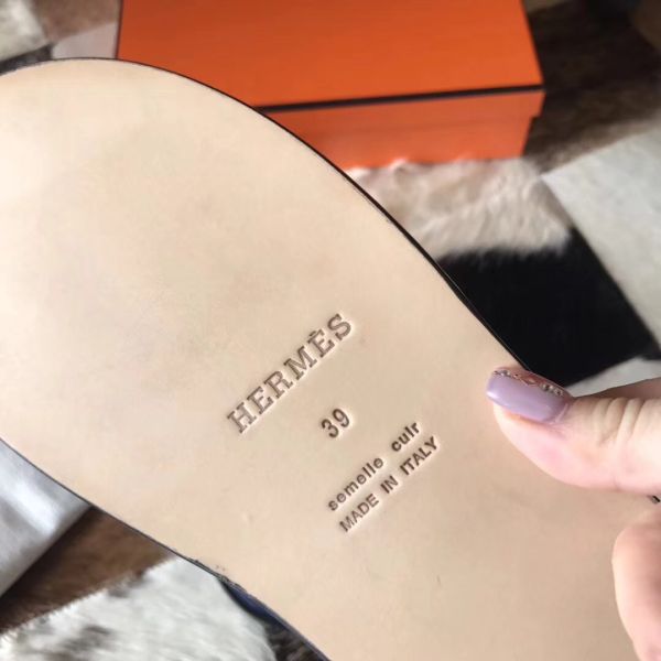 Hermes Izmir Sandals In Navy Blue Clemence Leather
