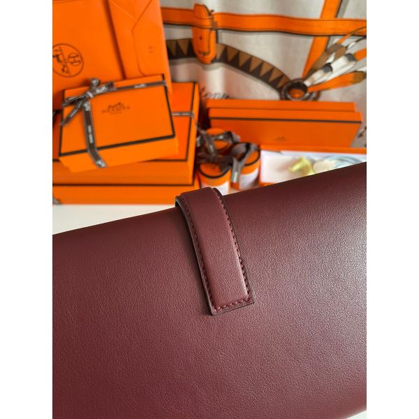 Hermes Jige Elan 29 Clutch Bag In Bordeaux Swift Calfskin