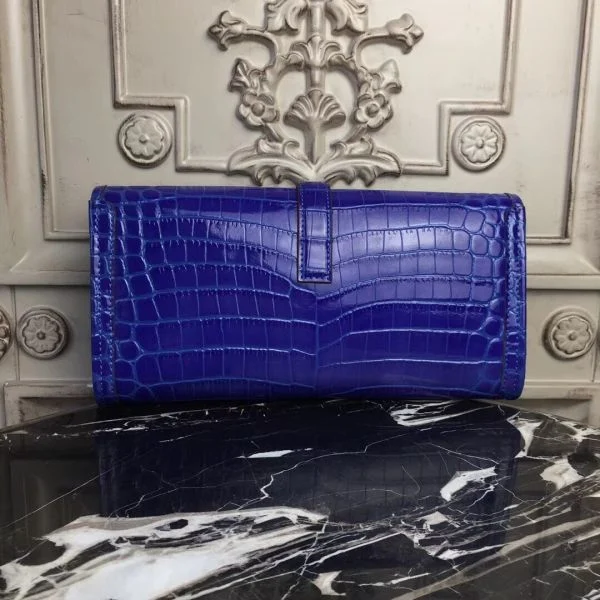 Hermes Jige Elan 29 Clutch In Blue Electric Crocodile Leather