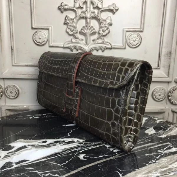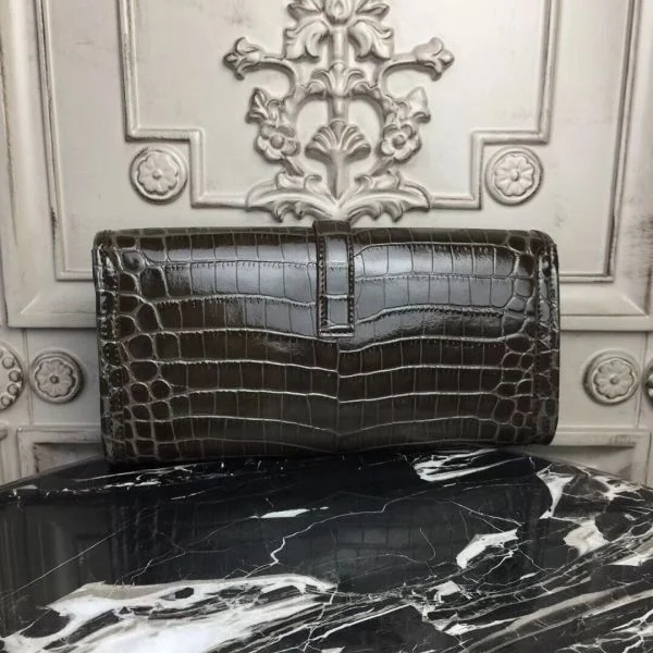 Hermes Jige Elan 29 Clutch In Chocolate Crocodile Leather